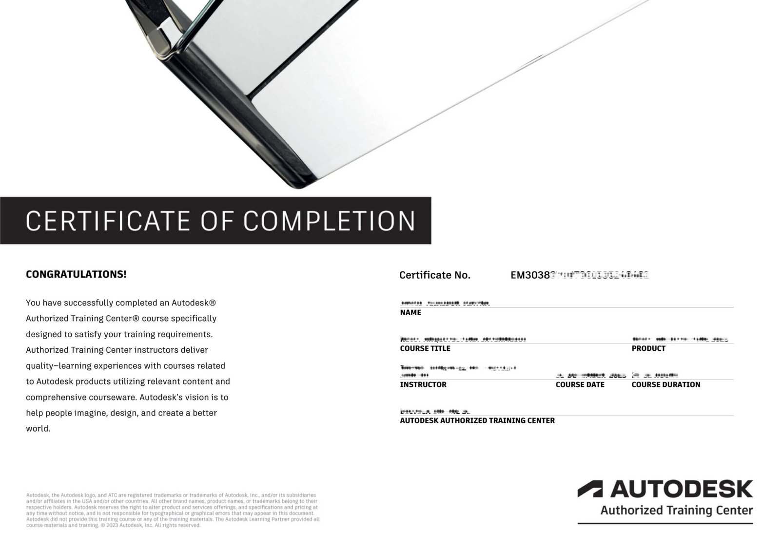 Akademi Tasarım, Autodesk tarafından Türkiye’de yetkilendirilmiş bir eğitim merkezidir (Autodesk Authorized Training Center – ATC®). Eğitim programının sonunda katılımcılara uluslararası geçerliliği olan İngilizce dilinde resmi Autodesk sertifikası düzenlenir.